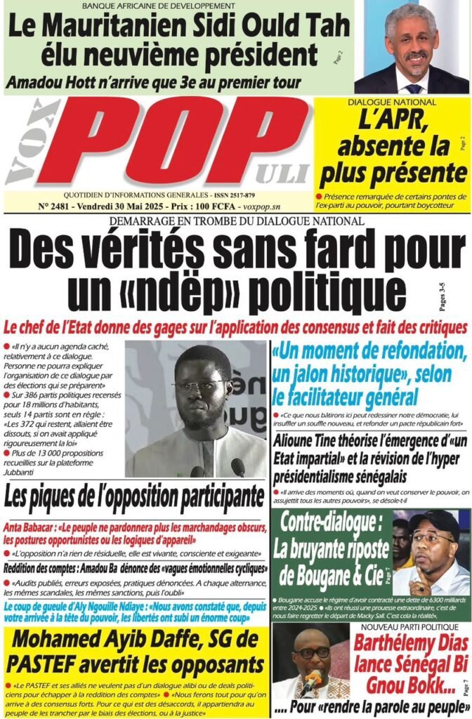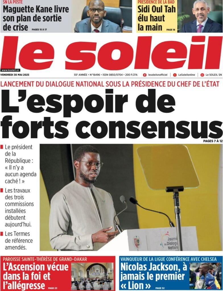 Les Unes des Quotidiens Nationaux Du 30 Mai 2025 Posted by Baba arona Aly Categories Blog, INFORMATIONS Date 30 mai 2025 Comments 0 comment Bonne Lecture Share: Baba arona Aly Previous post Decision portant nomination d'intendants 30 mai 2025 Next post Décision portant nomination d'Intendants, de Proviseurs,Censeurs,Principaux et Surveillants Généraux du 27 Mai 2025 30 mai 2025 You may also like Compte rendu de la rencontre MEN et G7 sur la formation des chargés de cours 1 août, 2025 Note D’information du MEN sur la Formation à Distance 8 juillet, 2025 INFOS: Des décisions de nominations des chefs d’établissements disponibles consulter la rubrique documentation 18 juin, 2025